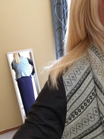 I love that it is blue {for baby boy?!} and the top/breast part is already really stretchy, so it's perfect to nurse in!! Seriously, I am huge people haha! I didn't realize how big my belly was until I saw it in this dress. It's also a size medium, and clearly fits a 9 month prego booty/belly and I am about 5'8 so I think the length is fairly decent too.