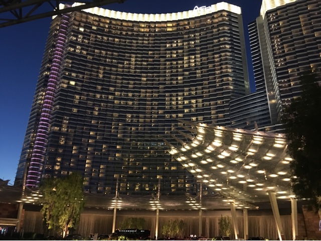After we said our goodbyes, we headed over to the strip to check into our hotel room at the Aria. We hadn't been to Vegas since all of the construction had finished, so we were SO excited to see all of it. We waited in a bit of a line to check in, only to find out we were in the wrong place because SOMEBODY was being super sneaky and upgraded our room to a suite!! We had our own check in area and walked into the room to see this...
